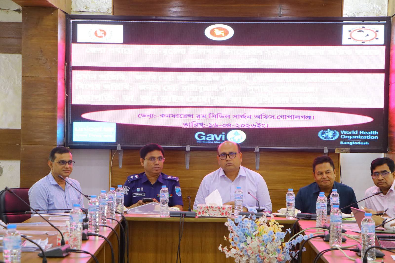 গোপালগঞ্জ সিভিল সার্জন অফিসে "হাম- রুবেলা টিকাদান ক্যাম্পেইন লুৎফর সিকদার ( ক্রাইম রিপোর্টার্স) গোপালগঞ্জ প্রতিনিধি: আজ১৬ এপ্রিল ২০২৬ খ্রিস্টাব্দে গোপালগঞ্জ সিভিল সার্জন অফিস এর সম্মেলন কক্ষে জেলা পর্যায়ে "হাম- রুবেলা টিকাদান ক্যাম্পেইন ২০২৬" সাফল্যমন্ডিত করতে জেলা এ্যাডভোকেসী সভা অনুষ্ঠিত হয়। উক্ত সম্মেলনে সভাপতিত্ব করেন জনাব ডাঃ আবু সাঈদ মোহাম্মদ ফারুক, সিভিল সার্জন, গোপালগঞ্জ । এ সময় প্রধান অতিথি হিসেবে উপস্থিত ছিলেন জনাব মোঃ আরিফ- উজ-জামান, জেলা প্রশাসক, গোপালগঞ্জ এবং বিশেষ অতিথি হিসেবে উপস্থিত ছিলেন গোপালগঞ্জ জেলার সুযোগ্য পুলিশ সুপার জনাব মোঃ হাবীবুল্লাহ মহোদয়।