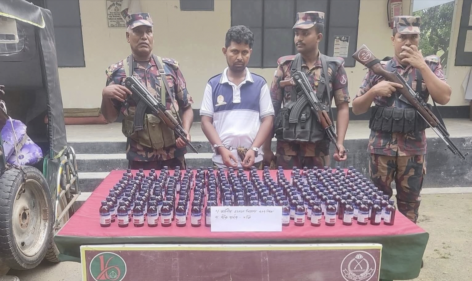 গোমস্তাপুর উপজেলার বাংগাবাড়ী ইউনিয়ানে বিপুল পরিমানে মাদকসহ পাচারকারীকে আটক করেছে: বিজিবি